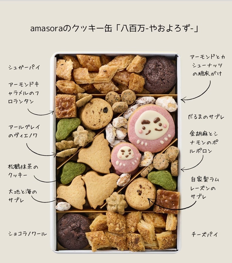 おめでたい千鳥や達磨(だるま)を型どったクッキーやパイなどで、
