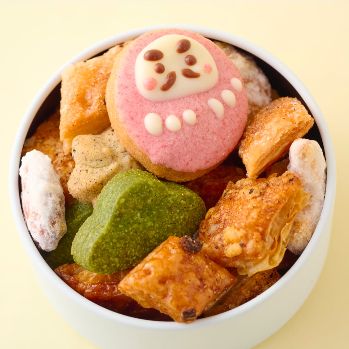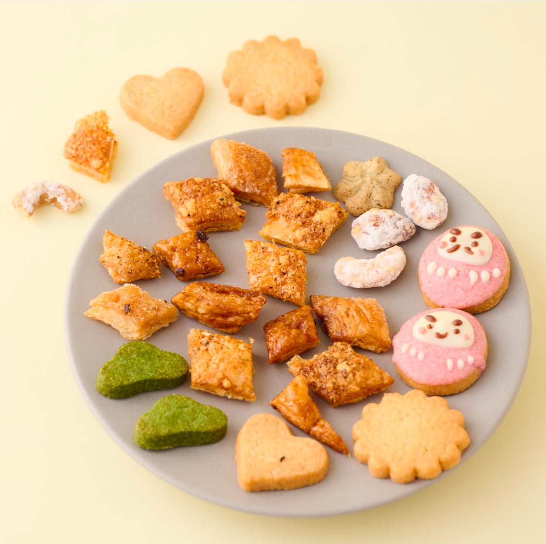 甘いだけじゃなく、しょっぱいパイを入れたり、味の変化も楽しいクッキー缶です。