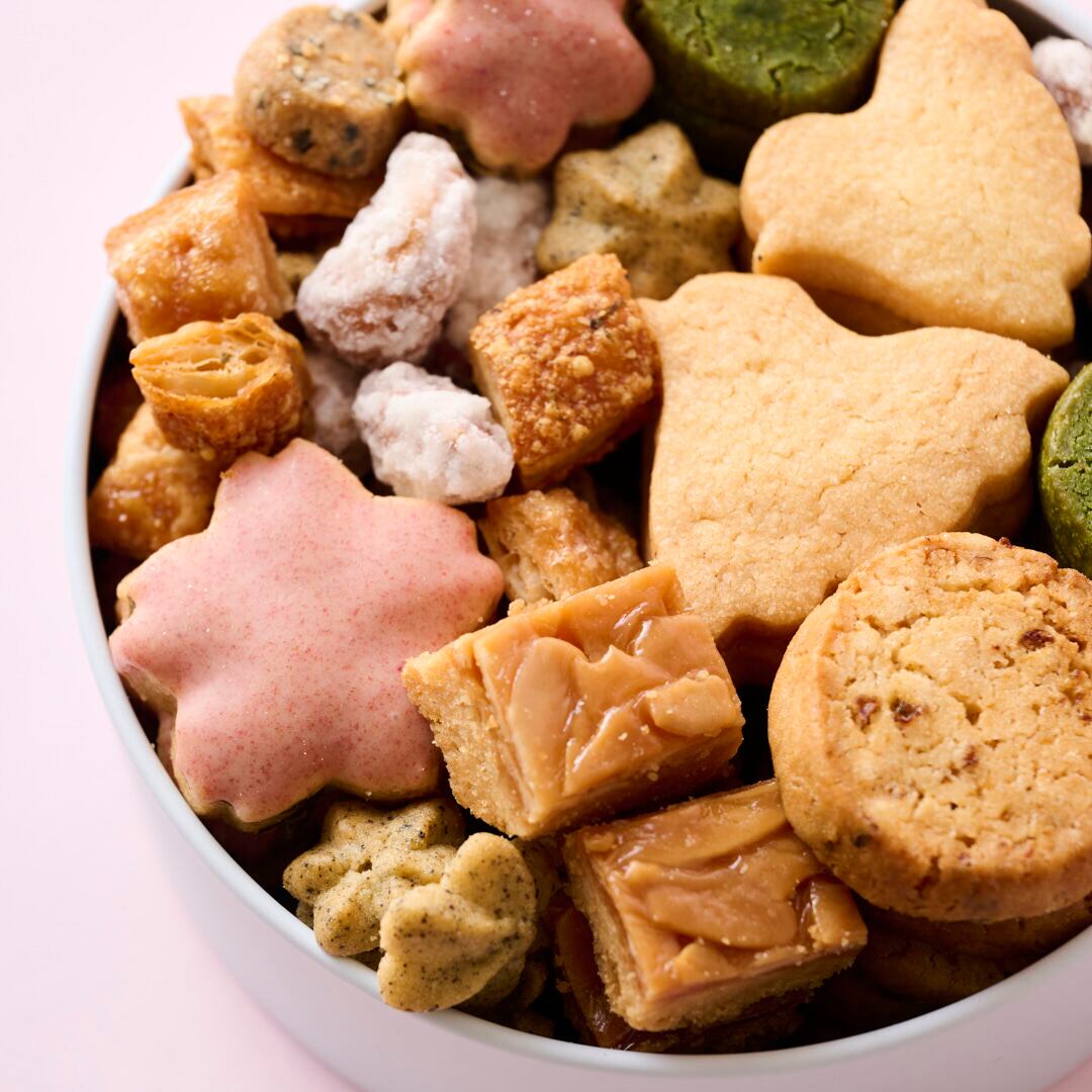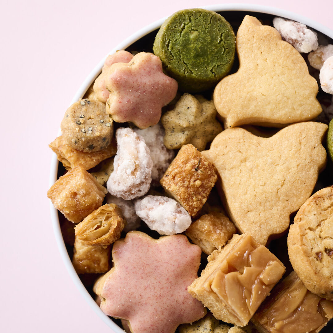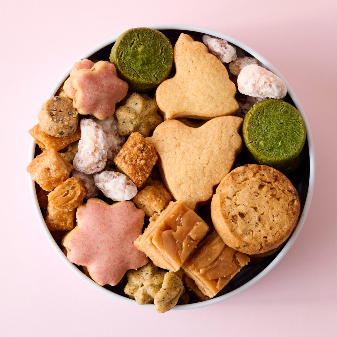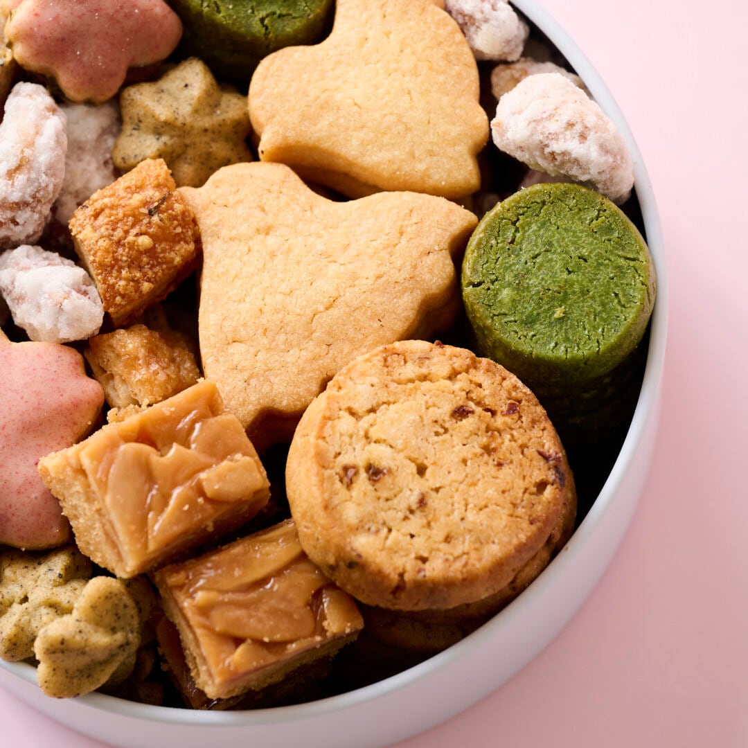 色とりどり、色々な味のクッキーやパイを詰め込んでいます。