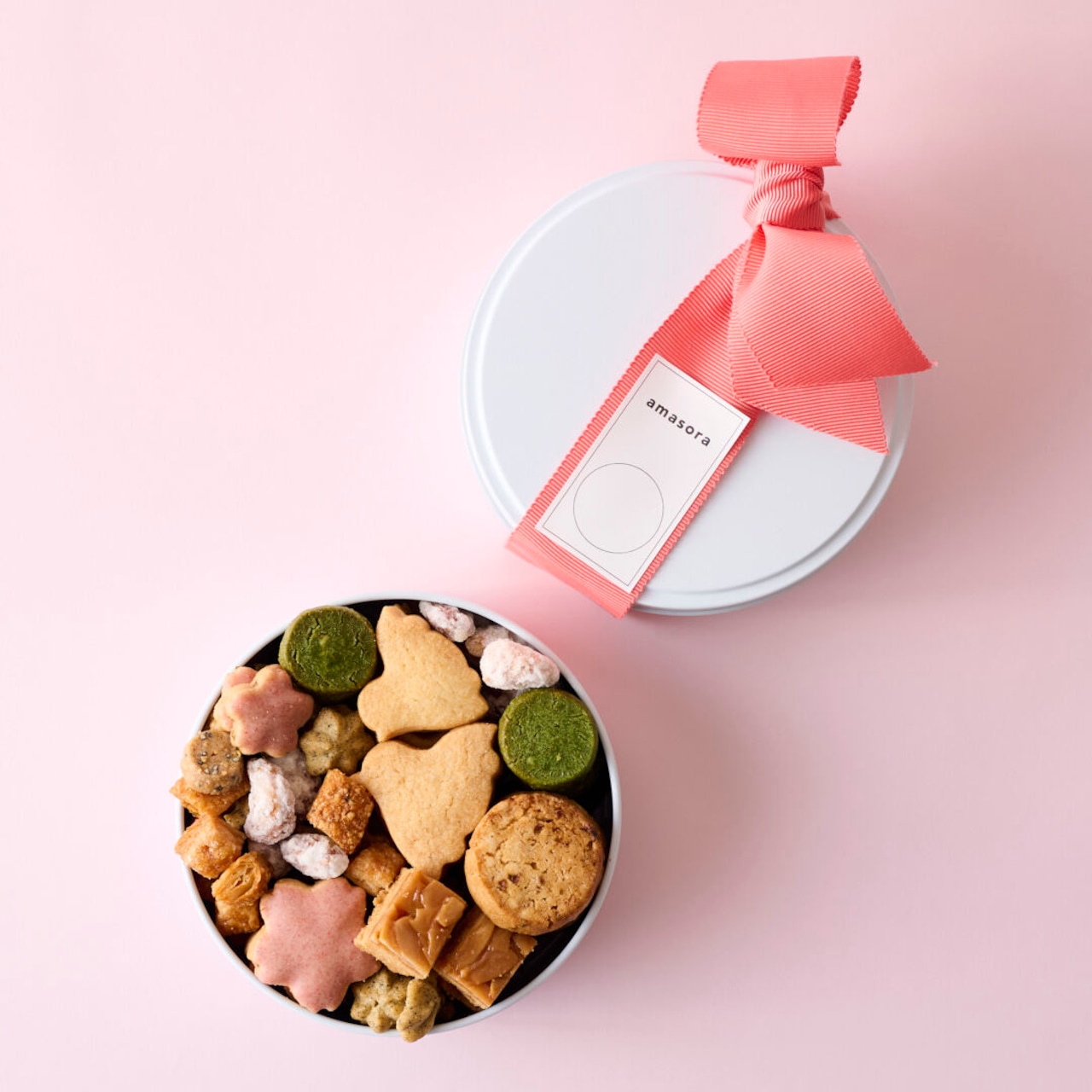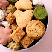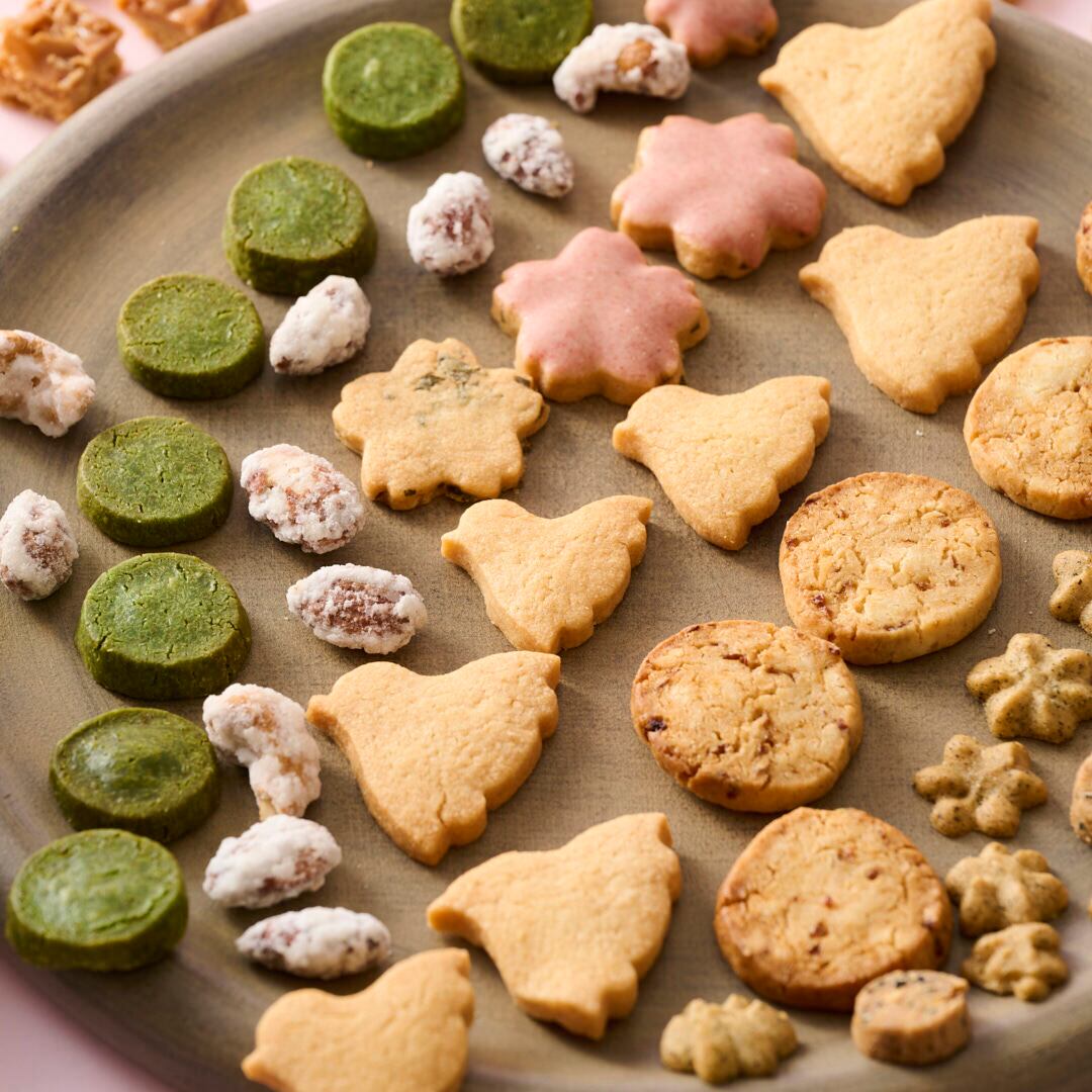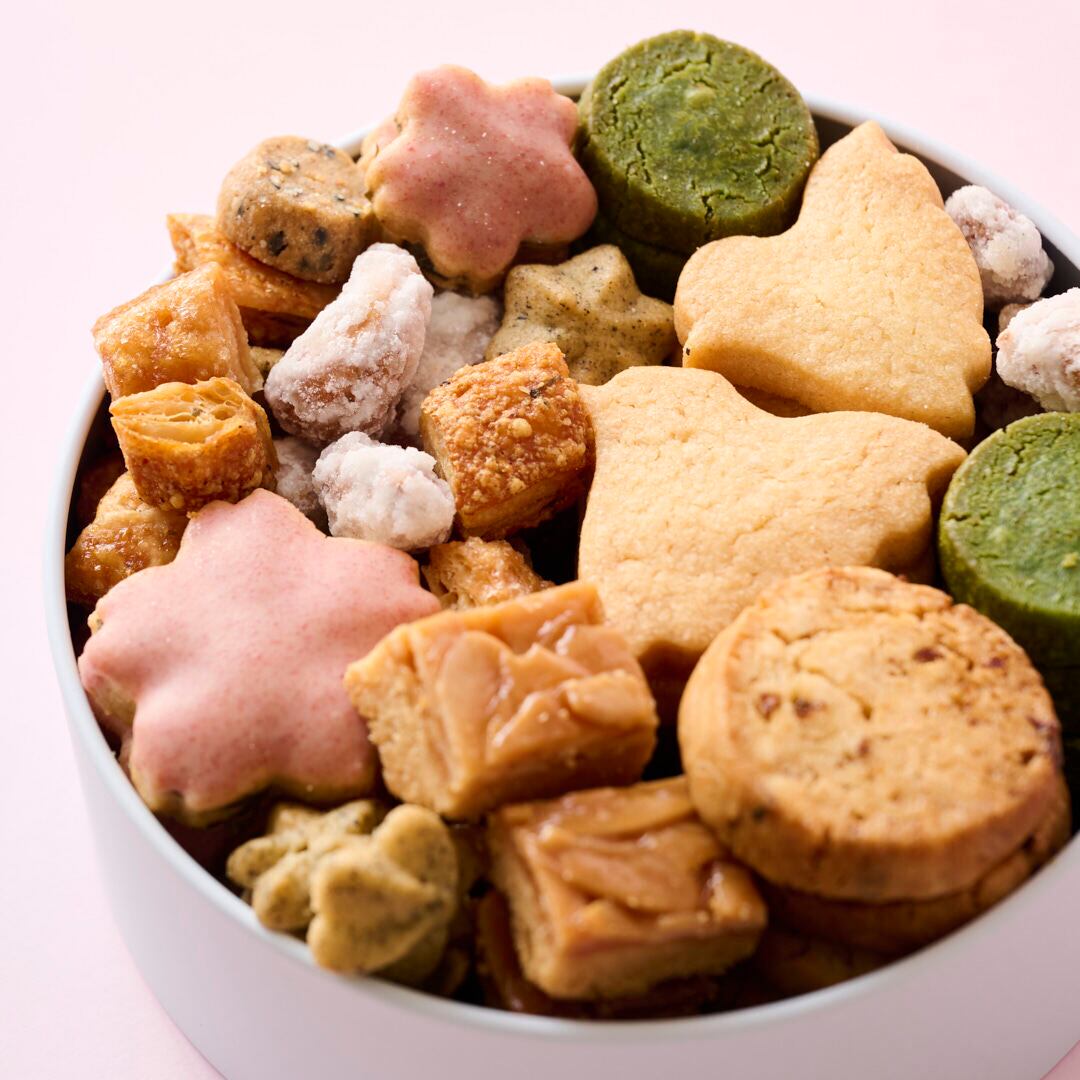 色とりどり、色々な味のクッキーやパイを詰め込んでいます。