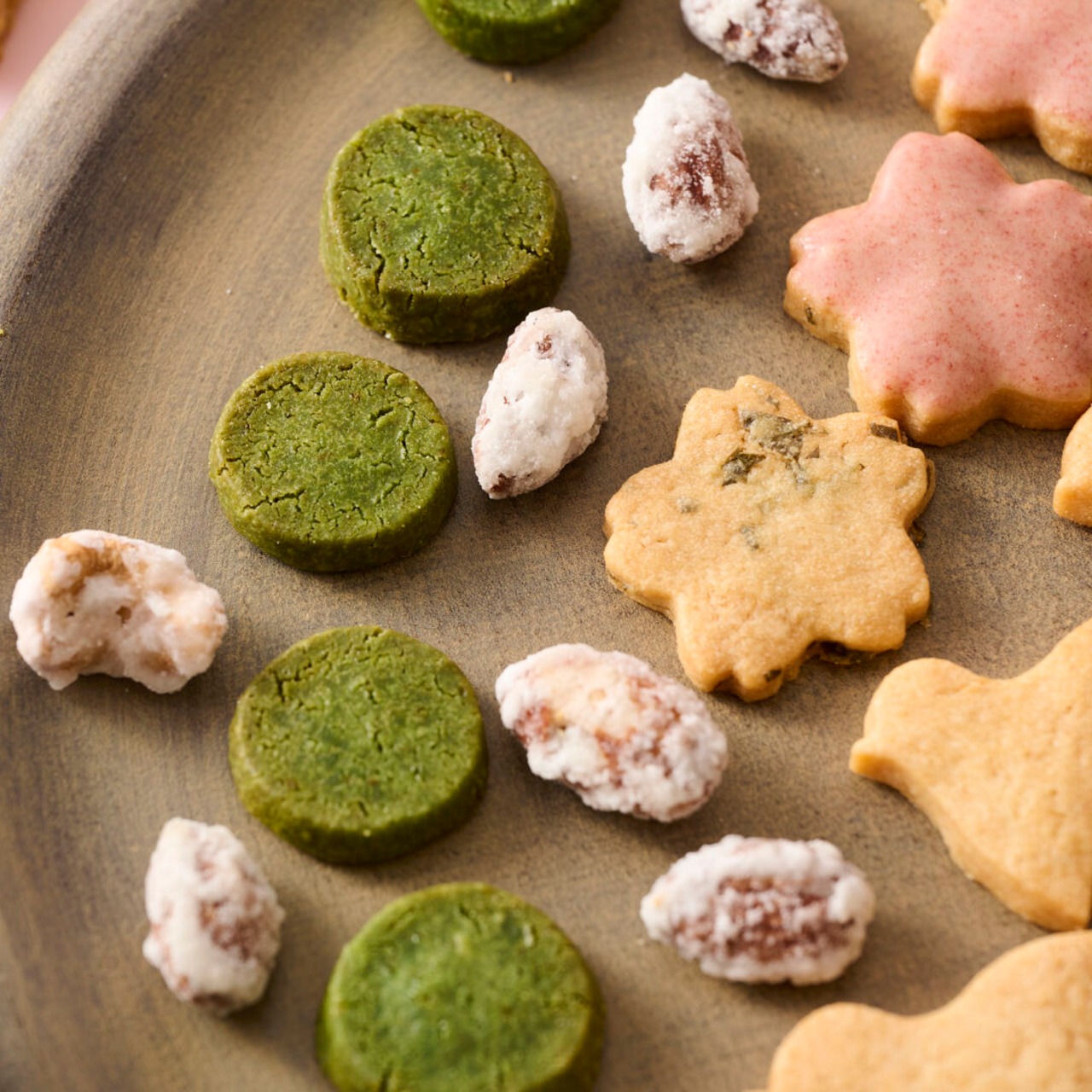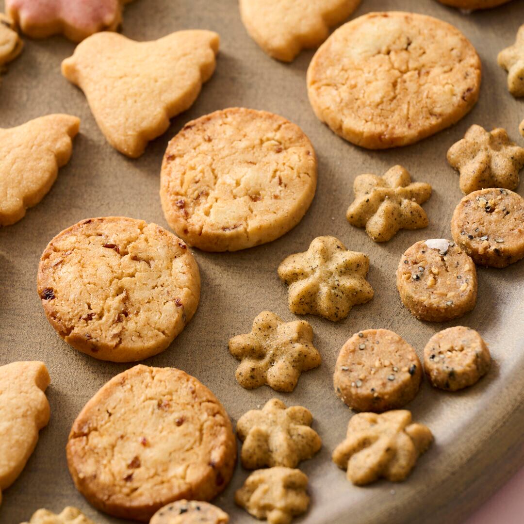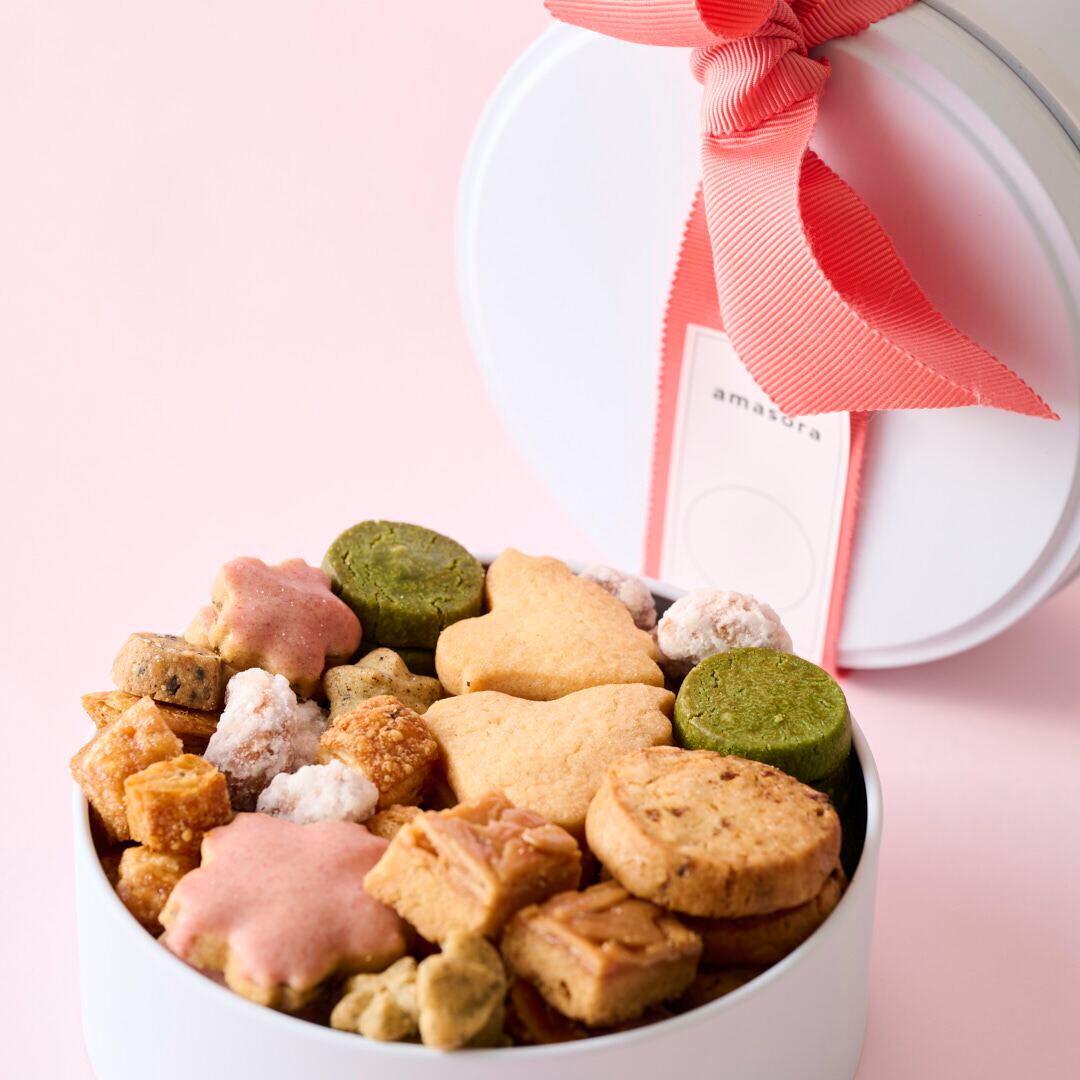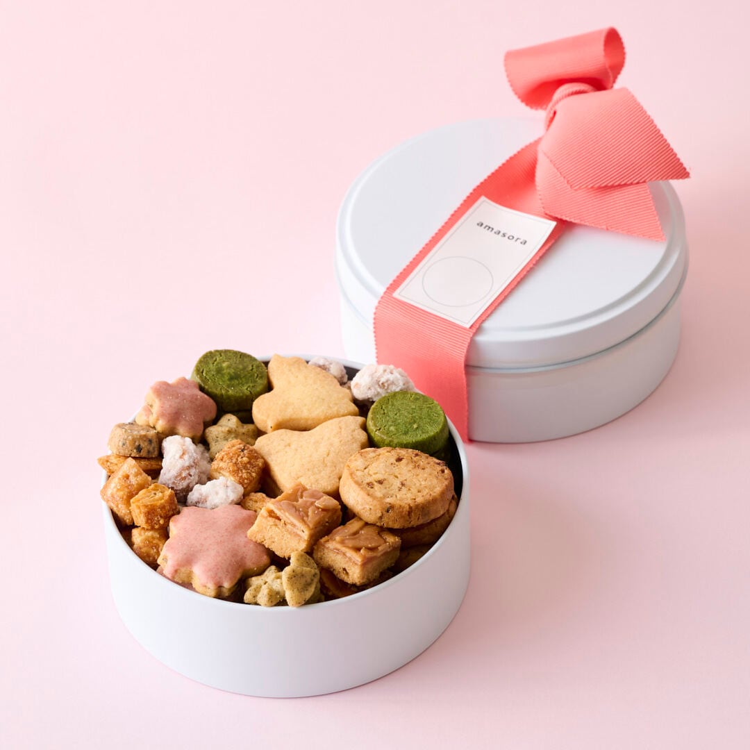 色とりどり、色々な味のクッキーやパイを詰め込んでいます。
